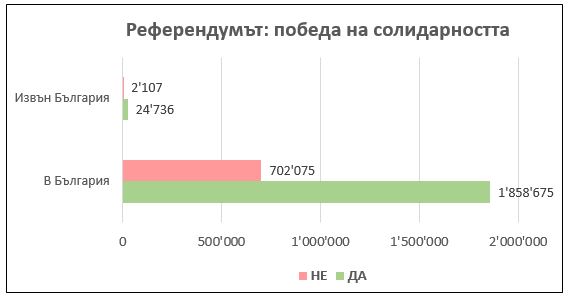 Изводът е ясен. Солидарността на гласувалите в България се оказа решаваща за крайния изход. Това беше най-доброто, което се случи на референдума. Резултатът е едно силно положително послание за общото бъдеще на българите в и извън Родината.