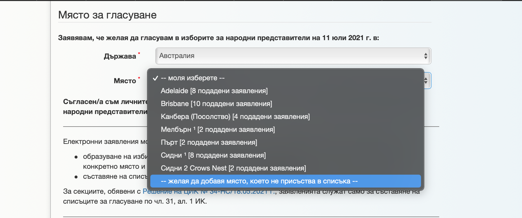 За отварянето на допълнителни секции другаде е необходимо подаването на заявления от българите по места. Условието е за всяко отделно място да бъдат събрани най-малко 40 заявления в срок до 15 юни 2021г., 23:59:59 часа българско време.